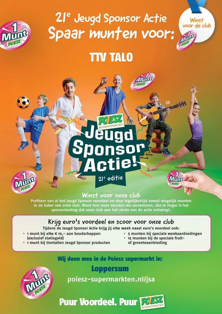 Sinds november vorig jaar is de supermarkt in Loppersum een Poiesz supermarkt geworden. De Poiesz supermarkten houden elk jaar een sponsoractie waarbij je munten kan verzamelen voor je vereniging wat uiteindelijk een geldbedrag oplevert.